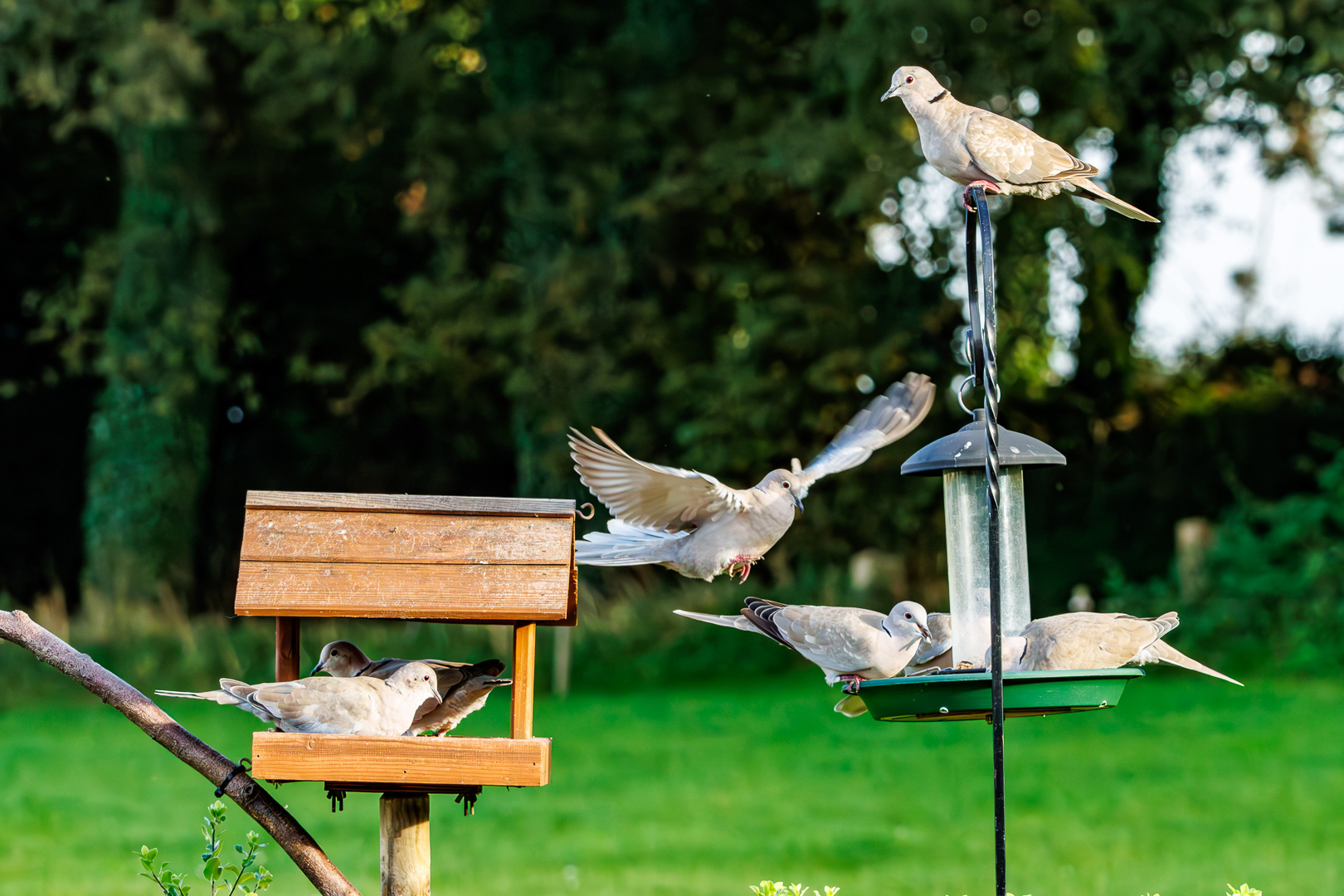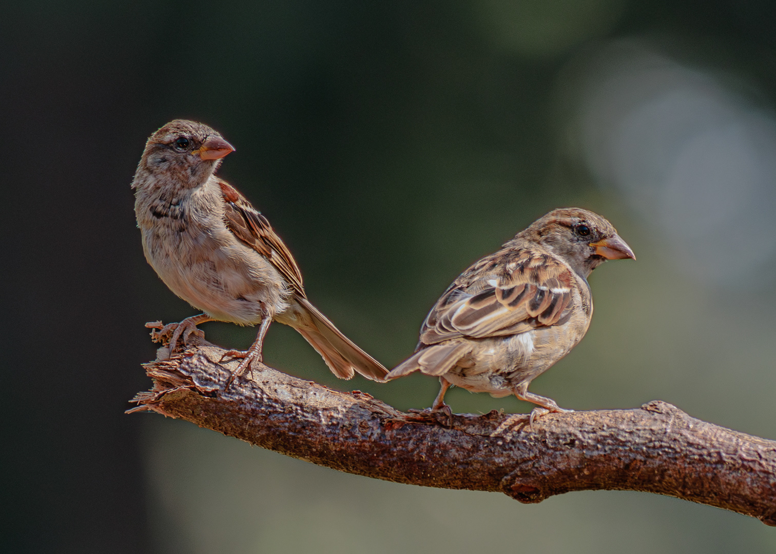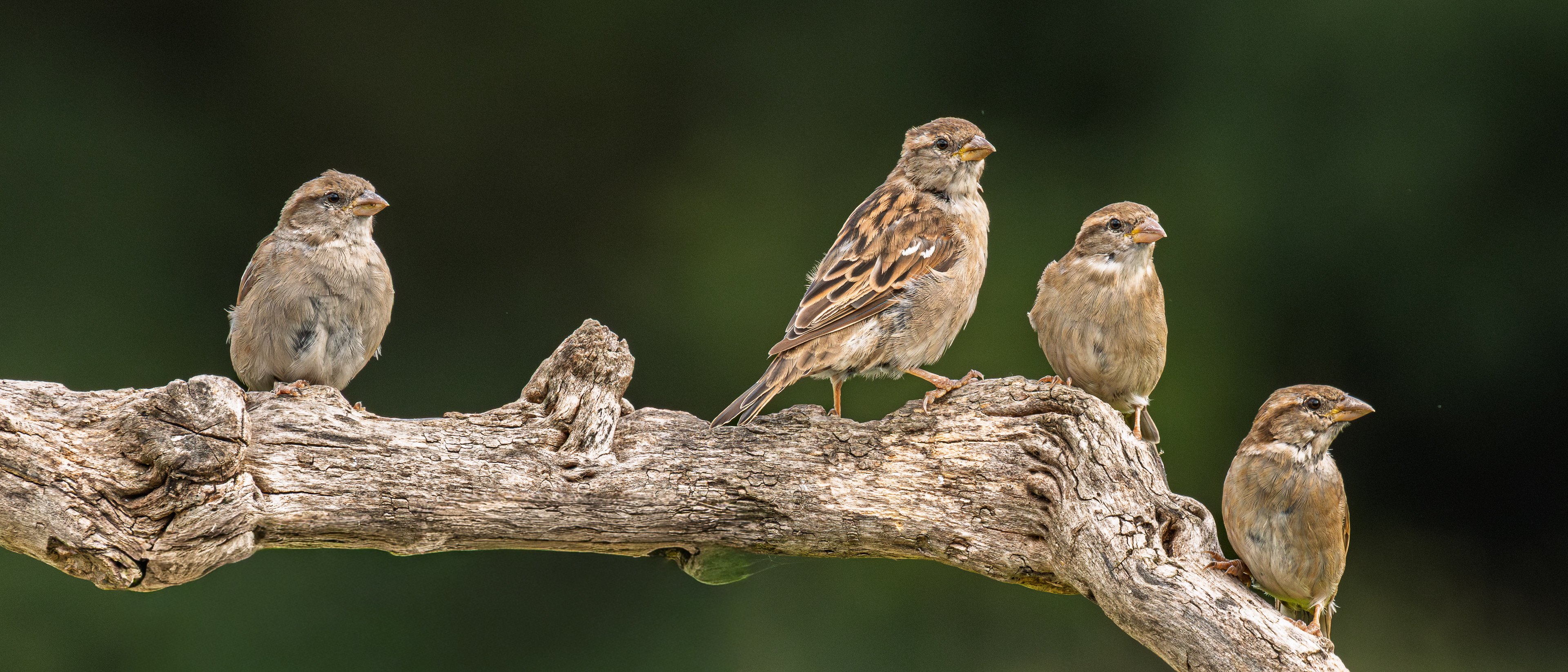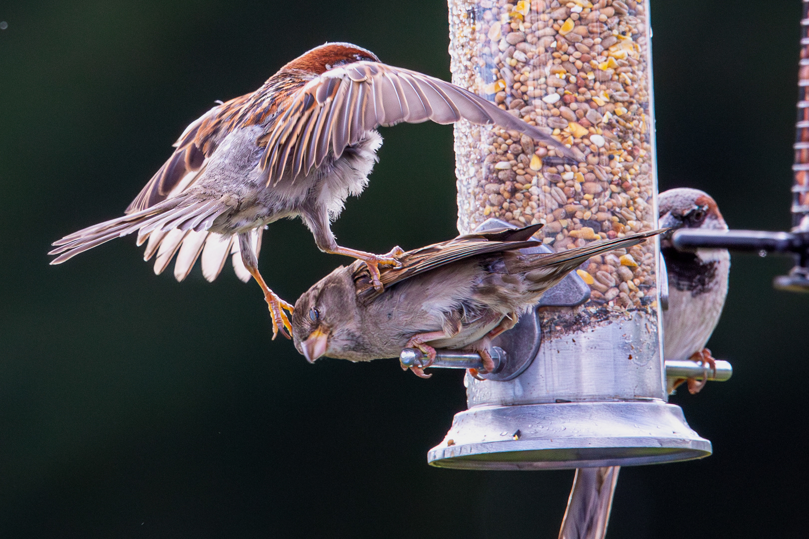 Sparrows waiting for food.