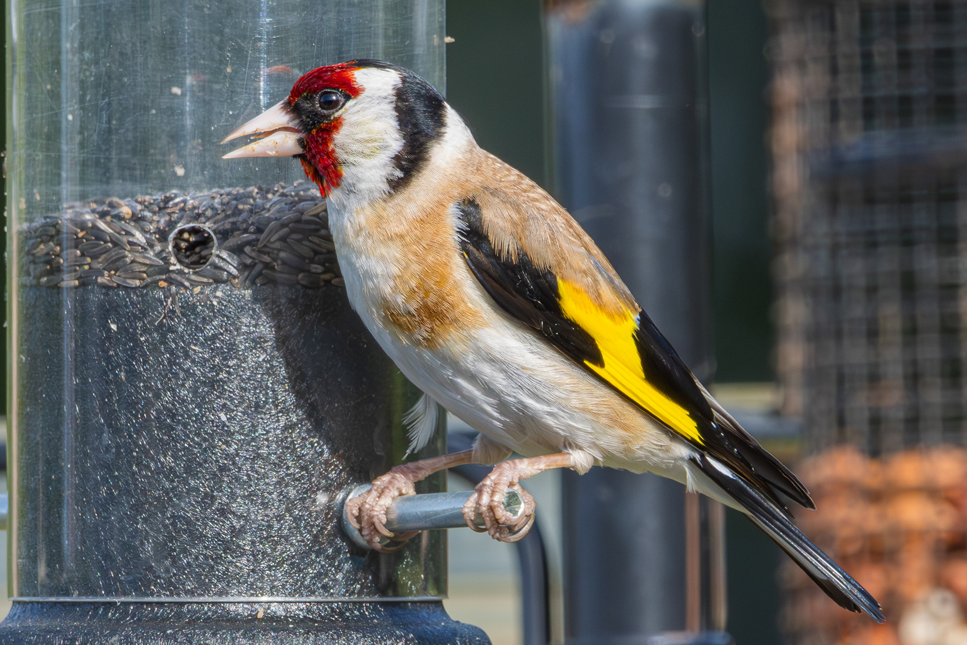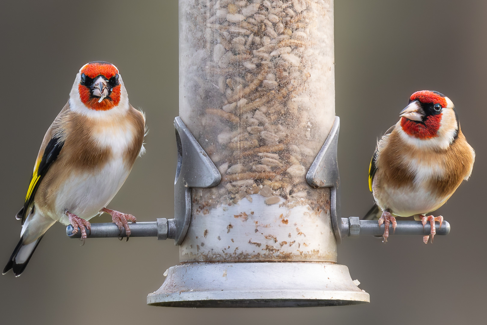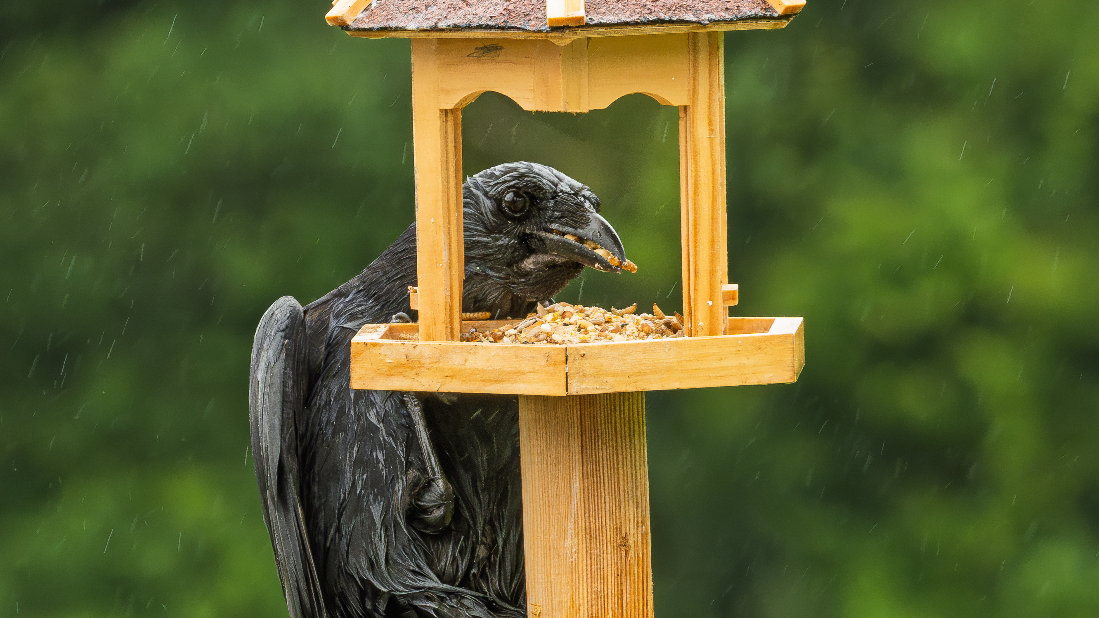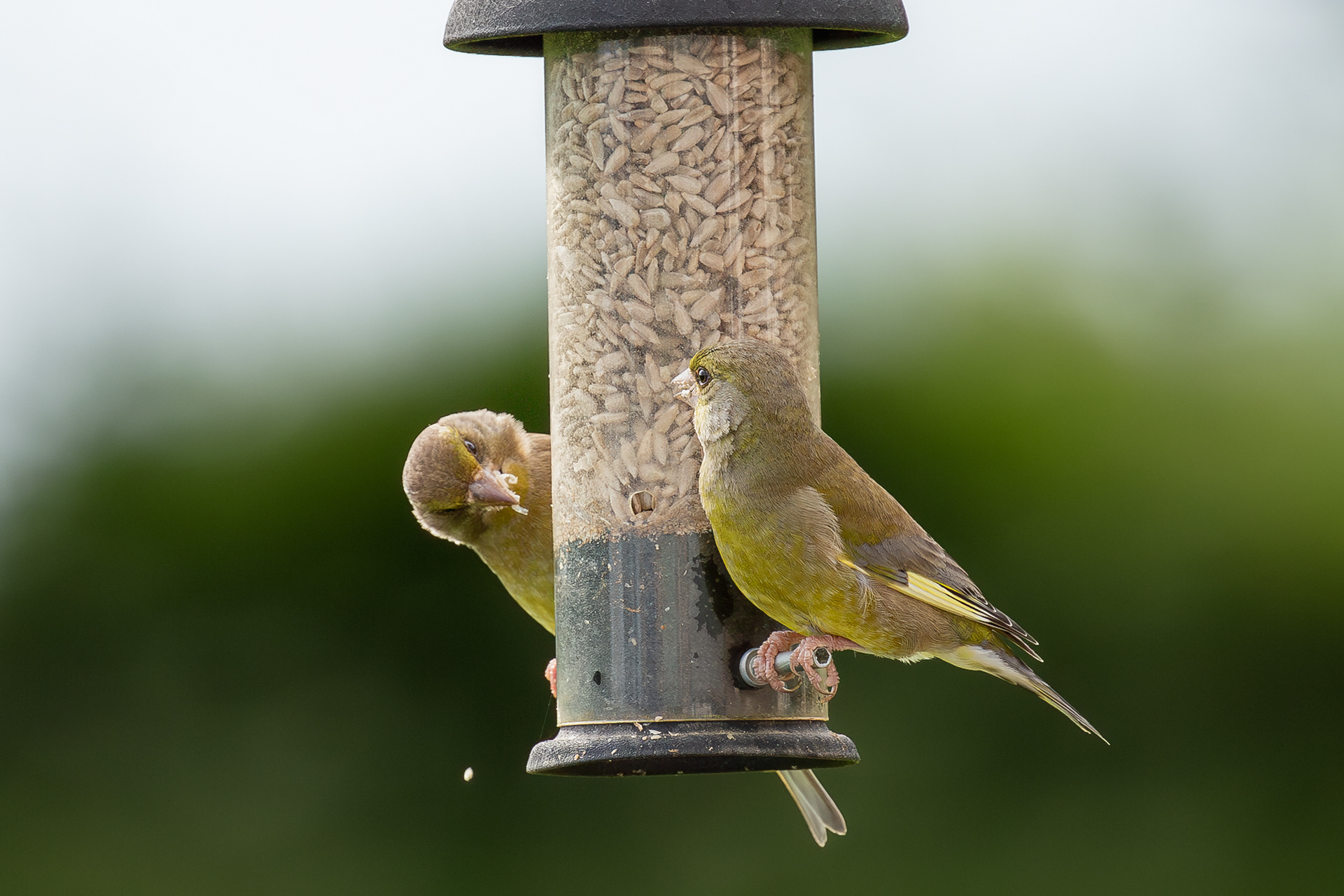 Sparrows waiting for food.